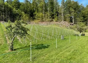 Auf der sonnigen Fläche wachsen rund 940 rote und 610 weisse Rebstöcke. Besonderes Augenmerk liegt auf dem biologischen Aspekt: Die Hälfte des Areals ist der Natur als Biodiversitätsfläche vorbehalten. Die robusten Rebsorten kommen ohne schwere Chemie aus und garantieren puren Genuss.